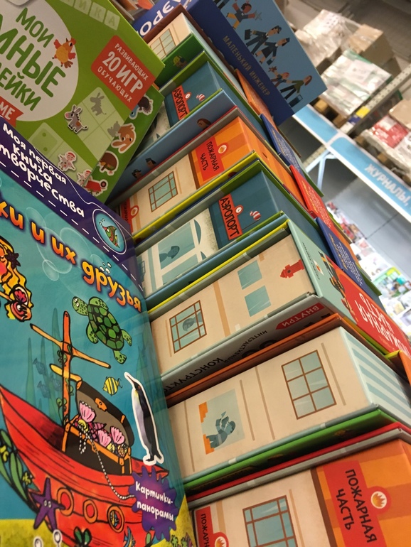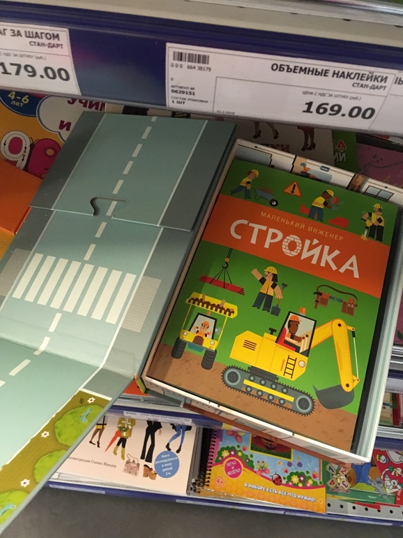 Какие-то наборы книга + конструктор. Не вчитывалась, т.к. явно не на наш возраст, но выглядит интересно и добротно. Пожарная часть, аэропорт, стройка.