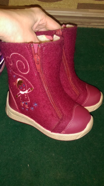 Вот и мы купили валенки фома на 2 см больше и ребенок в них или косолапит или падает, поэтому решила не мучить ребенка, а одела страшные самовалки которые от сына остались, но зато теплые. Лучше поискать по скидкам на размер больше. У нас нормально ходит с максимальным запасоммв 1.5 см