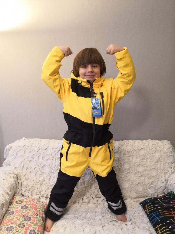 Классный мальчик и классный комбез, но мне кажется неудобно с мотней будет лазить куда-то, вот даже на горку вверх подниматься по идее ноги же поднимать надо.
