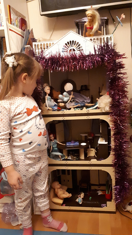 Алена, посмотрите домик Огонек. Он пластмассовый, легкий, но прочный. И мебель к нему не по заоблачной цене. И сам не дорогой. И собирать можно ввысь или длинну. Барби там в полный рост помещаются.