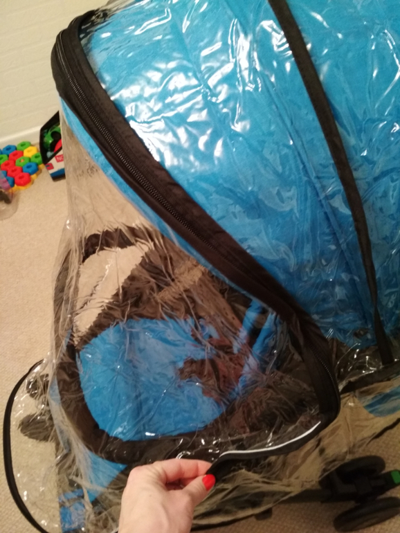 Также версия Elite имеет дополнительный козырек на капюшоне, собственно, поэтому я ее и выбрала. Достаточно закрывает 1.5 годовалого малыша, старшего сына и подавно закроет: