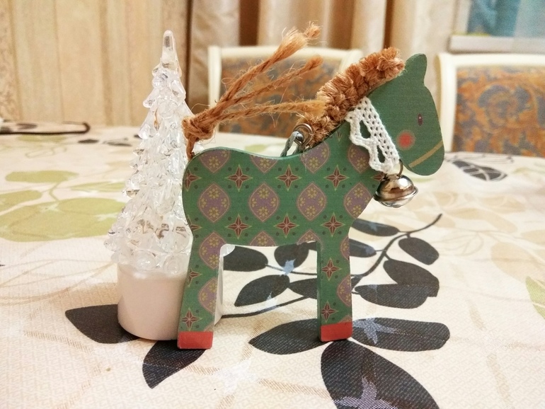 Вот та сама лошадка и елочка. Елочку сын сразу унес себе, ясное дело=) Лошадка моя! Она идеально любимого цвета (как у Ослика Иа: "мой любимый цвет"🤣)