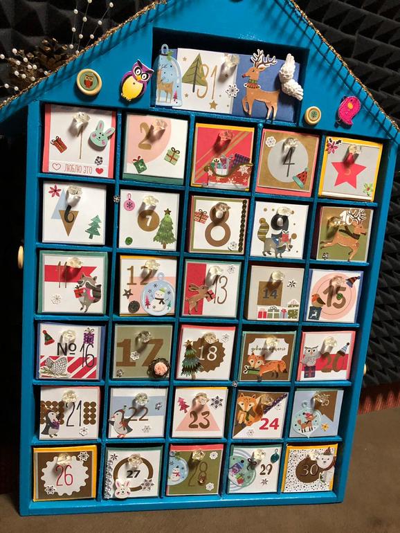 Все для детского праздника+наши фотохвастыКогда я занялась поисками хорошего адвент-календаря, то поняла - "тот самый" найти практически невозможно 😒 Выход был один - сделать его самим. Основу попросила изготовить нашего дедушку, купила цветной картон, наклейки и пр. Т.к. из-за малышки, со свободным временем сейчас не просто, попросила нашу фею-крестную помочь. И вуаля - вот такое чудо получилось. Сложнее было с подарками; не всё удавалось запихать 😅 И вы не представляете, насколько проще нам стало вставать в садик по утрам😌
