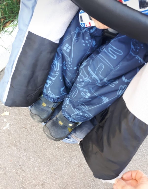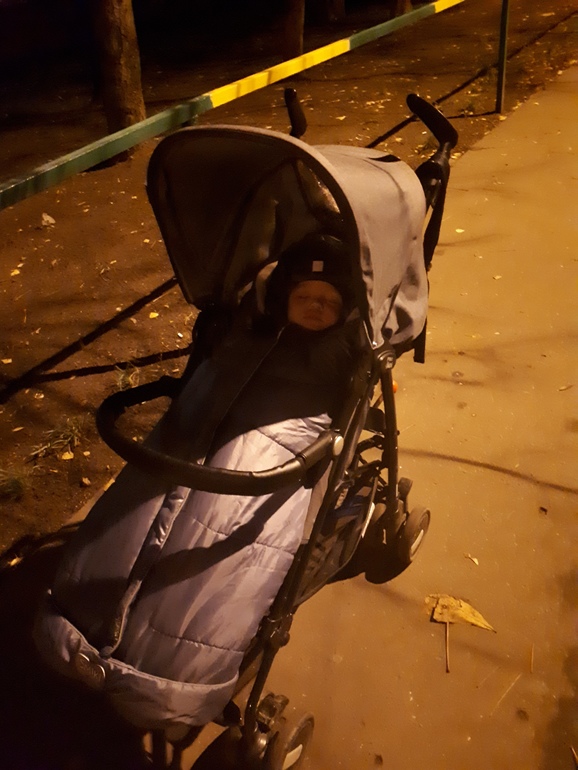 Заснул в трости( на улице уже не спим, и в трости не сильно поднимается подножка, да и маловата она для сна( она у нас для поездок),но я была спокойная что точно не замерзнет!