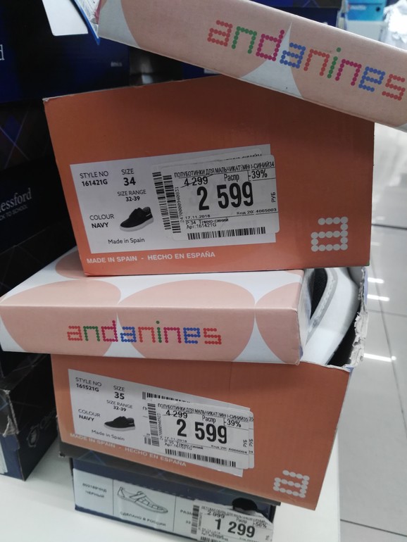 Пойду на разведку...у нас много девчачьей красивой испанской. Были и по 1999, и по 2399, и 2799. За две пары-отлично. Буду в дм, кому надо, могу посмотреть)