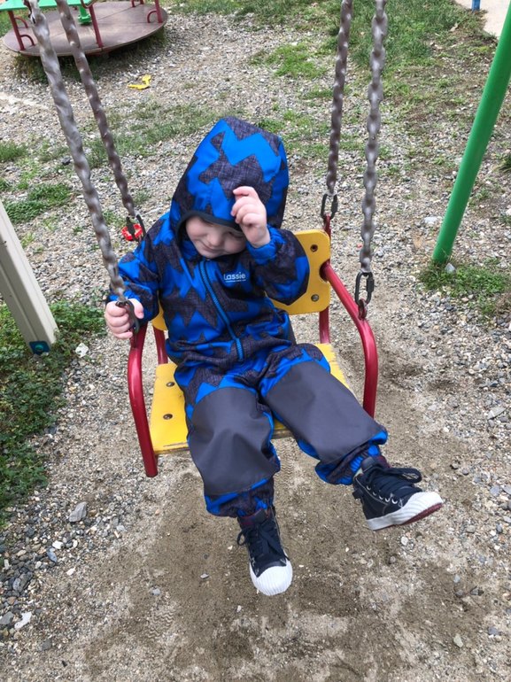 Мой ещё много в коляске ездит. До площадки и обратно едем. А на площадках покрытие резиновое, ( или снег, машины там его не разворотили), так что достаточно чисто.