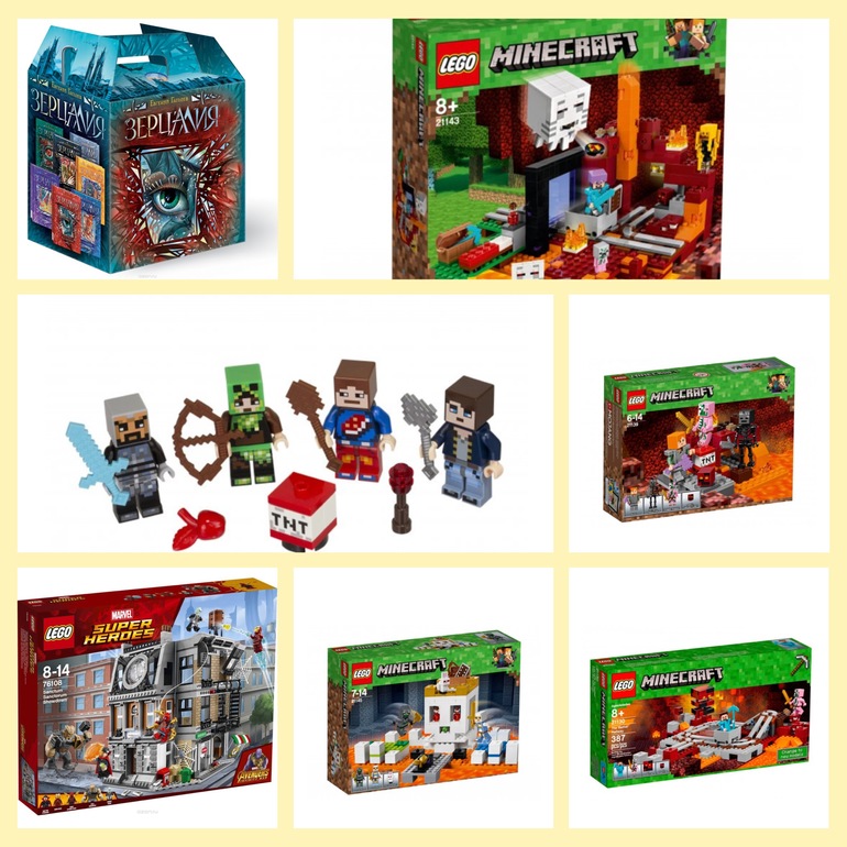 Из заказа ДМ под елку отправятся набор Лего супергероев с камнем бесконечности, до кучи набор книг Зерцалия. К сожалению, не перевели следующую книгу из любимой серии Драконья сага(((((, было бы совсем волшебно. От нас будет Лего Майнкрафт Портал, остальные наборы заказаны родственникам/друзьям.