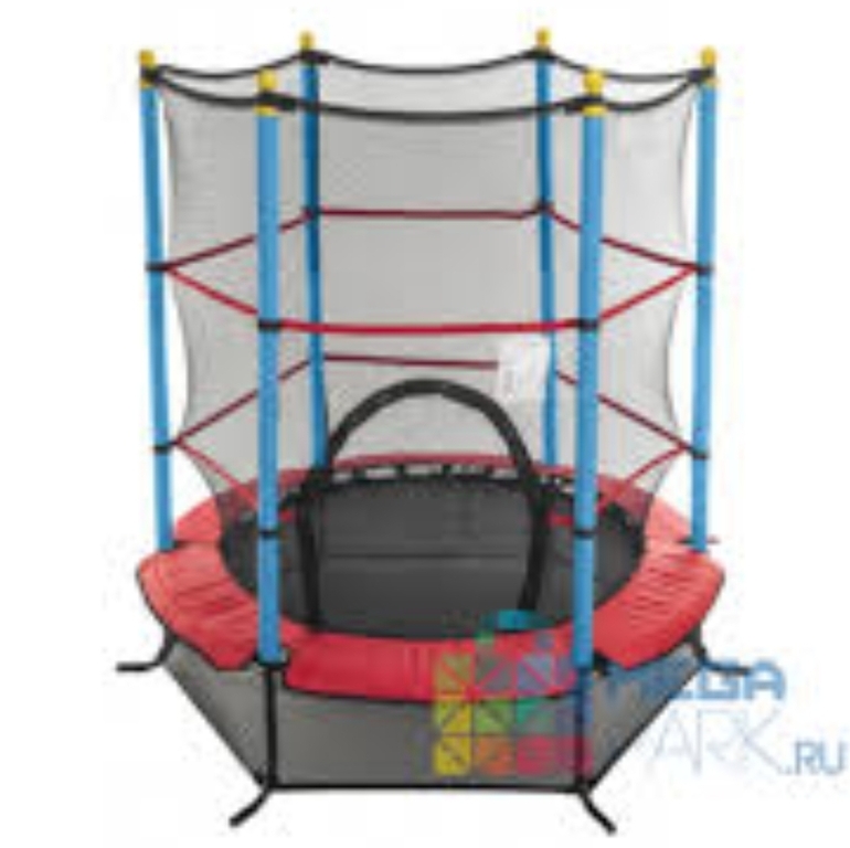 Он очень маленький (меньше полутора м в диаметре), низкий (20 см) и с низкой инертностью. Поэтому прыгать получается в центре (отмечен кругом), а "вылететь" с него невозможно в принципе,так как инертность очень небольшая. Он не сравним с Вашей уличной моделью на фото и такие сугубо домашние модели идут без сеток часто :) Да,полуторалетку я держу за руки,а она прыгает,а старшая в 3,5 вполне нормально и адекватно прыгает. За полгода травматизма не было,ни разу не падали
