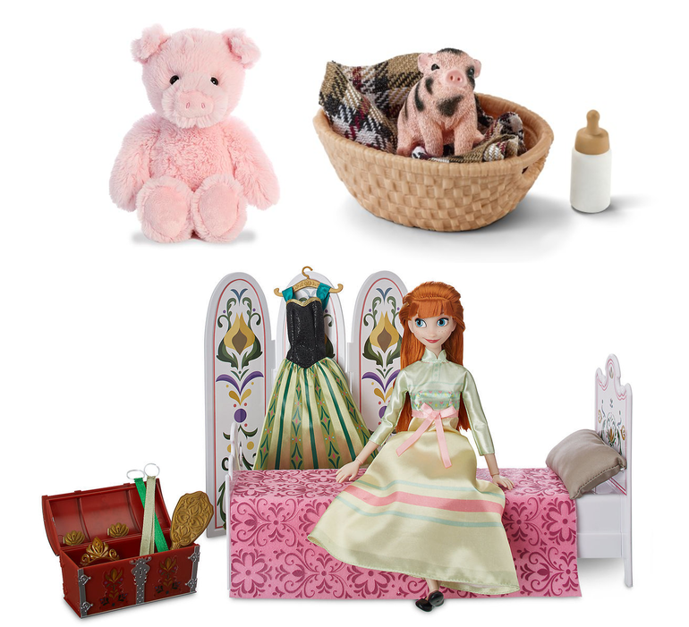 Племяннице (4 года) дарим мягкую игрушку Aurora, маленького поросёнка от Schleich и набор с Анной от Disney.