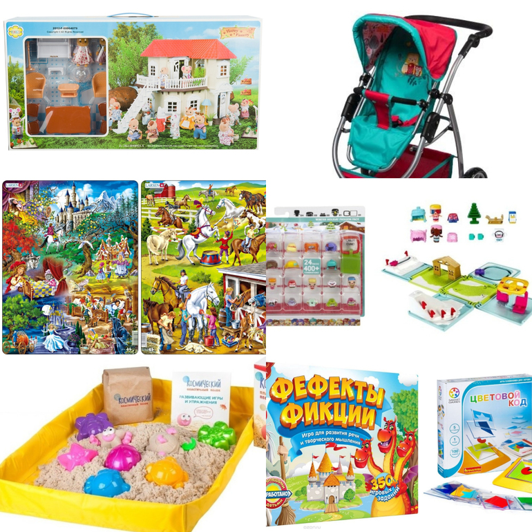 Все развивашки, а это Бондибон, фефекты фикции, пазлы, песок, виммельбух я бы покупала и выдавала просто, в рамках развития. Эмоциональный подарок,один или два максимум, положила бы под елку утром 1 января.