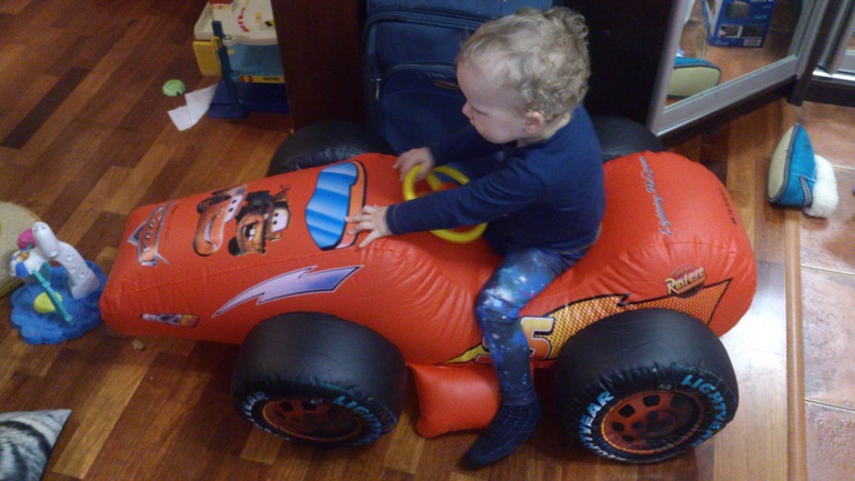 Говорит пока мало, сам письма не пишет. На вопрос что хочешь: "Би-би и ту-ту". Желание ребёнка - закон: