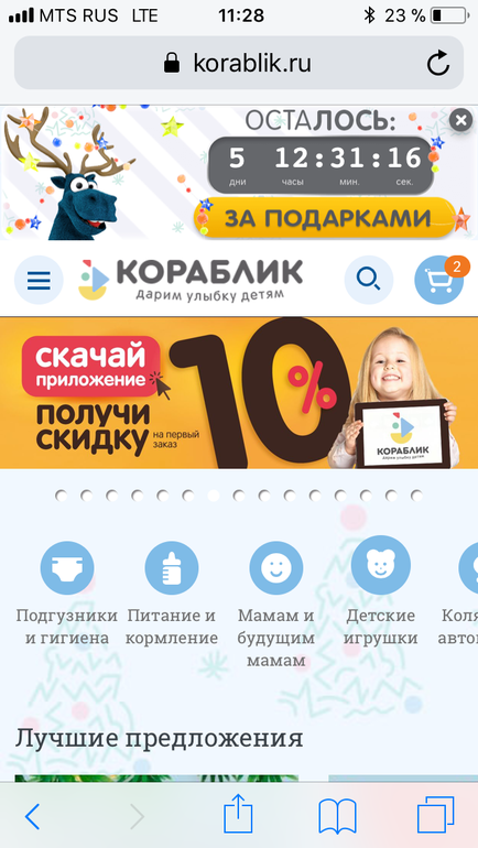 Есть баннер на сайте и на кассах листовки лежат в магазине. нужно скачать приложение, оформить все почти до конца, и в самом конце перед подтверждением заказа (или даже после) выходит сообщение, что сумма будет на 10% меньше. Не удобно, что в корзине сразу не отображается.