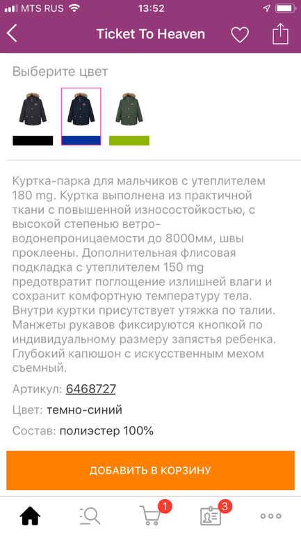 Детская одеждаДевочки, кто брал парку синюю Тикет на Ламоде (фото не грузится), с опушкой на капюшоне, подскажите как она по теплоте? Сколько грамм утеплителя? Мембрана?