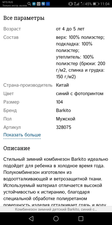 Такой комбинезон зима Баркито размеры 98, 98, 104 и один побольше (110 помоему, уточняю). У меня ребёнок 98 см сейчас, померию, скорее всего себе заберу 104,на остальные ищу компанию. По почте отправлю, но уже после нг.