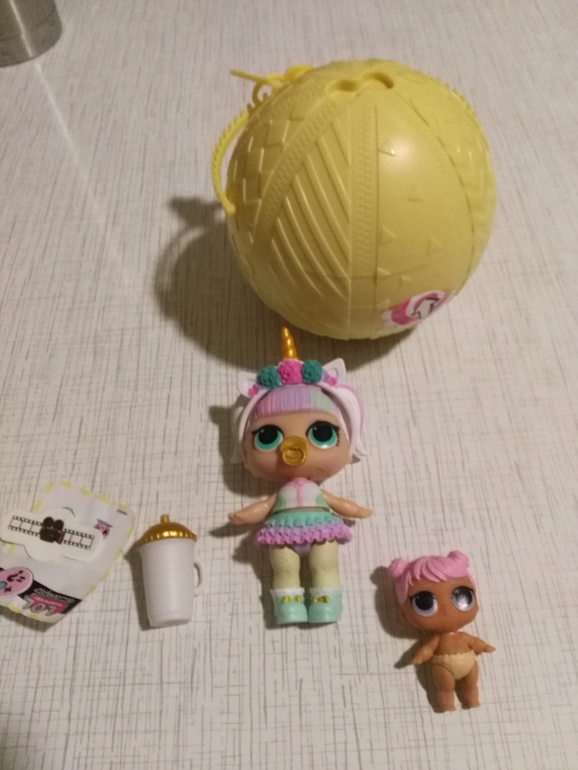 Видимо, дочки без Вас вскрывали))). Или не досмотрели. Это, если не ошибаюсь, лол конфетти поп 2-ой волны. И это не в одном шаре была Большая и маленькая, а в одном шаре была большая, а во втором 2 маленькие. День и ночь они, вроде, называются). Одни они такие в этой серии. Вместо одной большой - 2 сестренки.