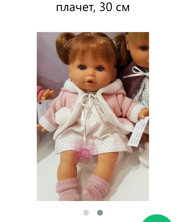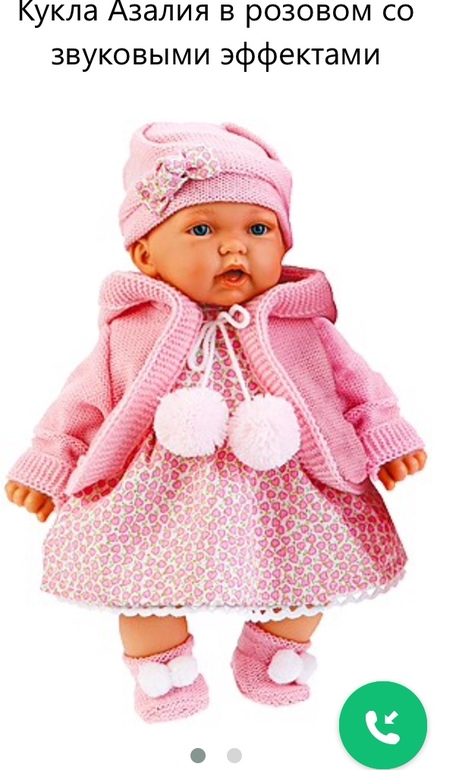 Я Азалию дочке на 1,5 года дарила, только у нас одежка в красном цвете, шапочка у нее не удобная, всё время боюсь потерять, на голове не особо держится, а кофточка не удобно застегивается, бумбоны на тоненьких ниточках перекручиваются. Дочка не оценила, простой пупс демистар ей нравился больше. В 2,3 подарила Nines d'Onil с соской 21 см с хвостиками пошла на ура, спать укладывает, хвосты крутит. На 8 марта запасла 26 см похожую nines. Единственное запах ванили не нравится