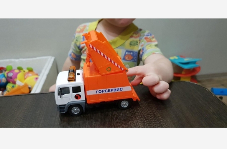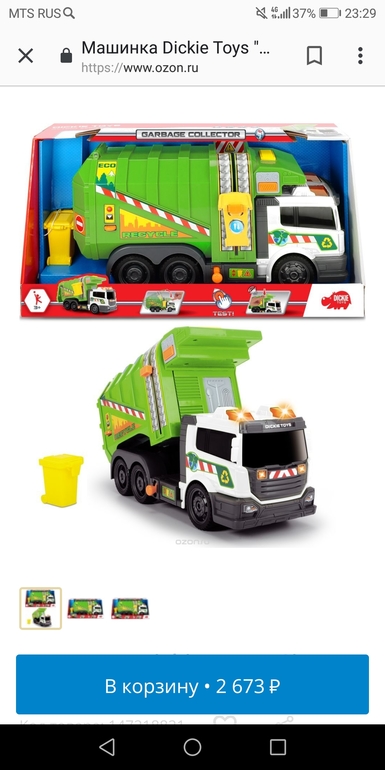 У сына от технопарка. Не большая. Инерционная. Бак открывается. В комплекте ещё мусорный бак.