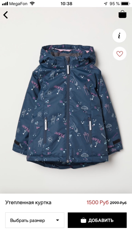 Детская одеждаПомогите определится с размером .Сейчас дочке 2,5 года ,носим полный 92 размер,весим 11кг.Заказала куртку hm 98 размера на холодную осень -зиму ,с учетом что размеры идут +6.А теперь сомневаюсь не маленькая ли будет ?