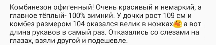 Дочке 2,3 года 92 см в начале сезона была, вес 15,5кг, ноги от ушей😅размер 90 нам только до конца зимы, на два года не распарывая не хватит, распарывать не хотела, но посмотрим как будет. На следующую зиму размер 100 уже купила. В 93 см утонете в размере 100.