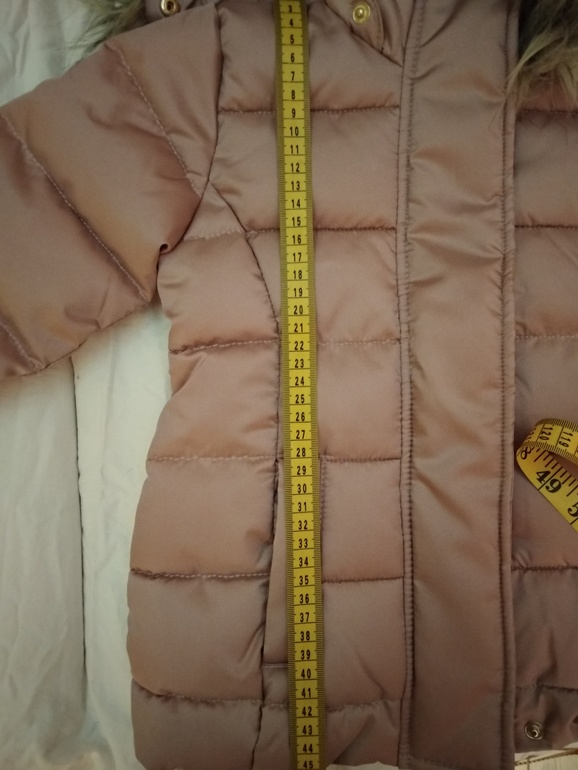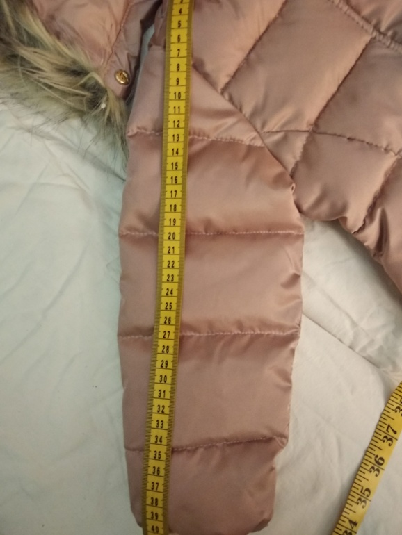 Добавила замеры. Длина куртки 45 см, длина рукава 40 см