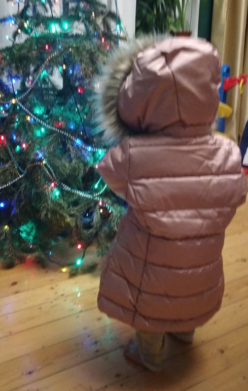 Вот она дочке. Её рост около 80, размер куртки 98.