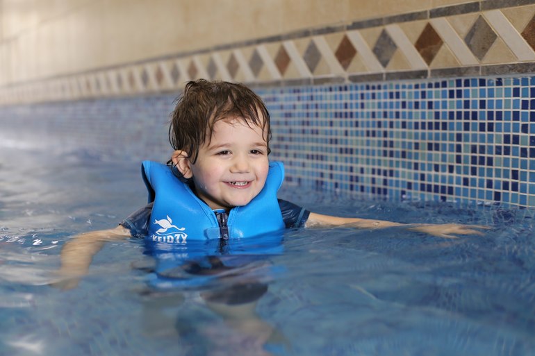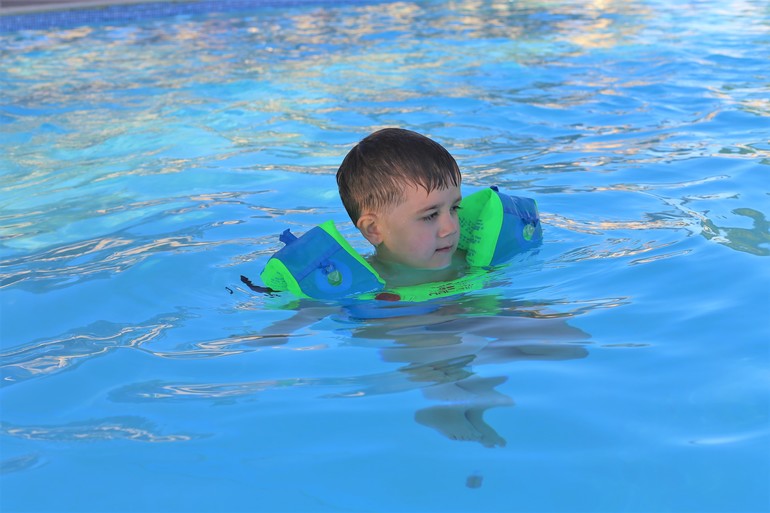 а вот второй. я не знаю почему, но стоило мне ребенка отпустить, он переворачивался вниз головой. плавали на расстоянии вытянутой руки только. с декалтоновским я сидела с шезлонга следила.