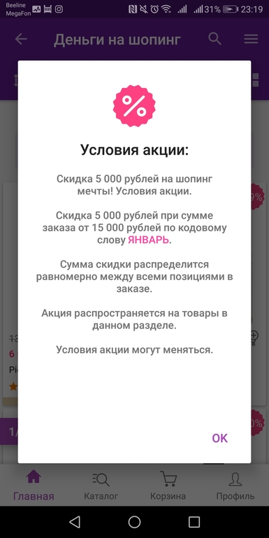 У меня позавчера такое же сообщение было. Пока я выбирала, внесла промокод, а мне написали, что нет такой акции... Так и не поняла что это было.