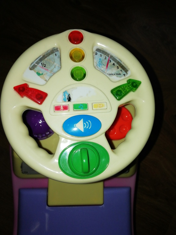 Не очень много музыки (сигнал на руле,кнопка с мелодией одна,одна с шумом моря,и одна с имитацией буль буль)) но очень крепкая машина,хороший пластик,до сих пор гоняет