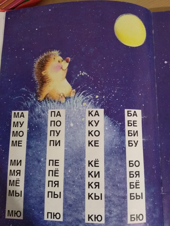 Отрабатывали слоги и потом слова опять по букварю Бахтиной