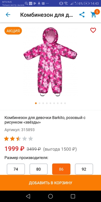 Зимний Комбинезон на девочку Баркито 86рр 1000р