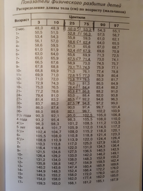 Я каждый месяц записывала в центельной таблице .. понимаю что мой строго по серединке . Так же возьмите если есть предыдущие замеры и посмотрите на какой рост ориентироваться..