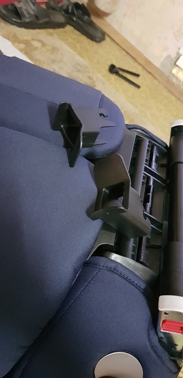 А в автокресле сзади полозья изофикс нужно выдвинуть и развернуть, у вас они сейчас задвинуты.