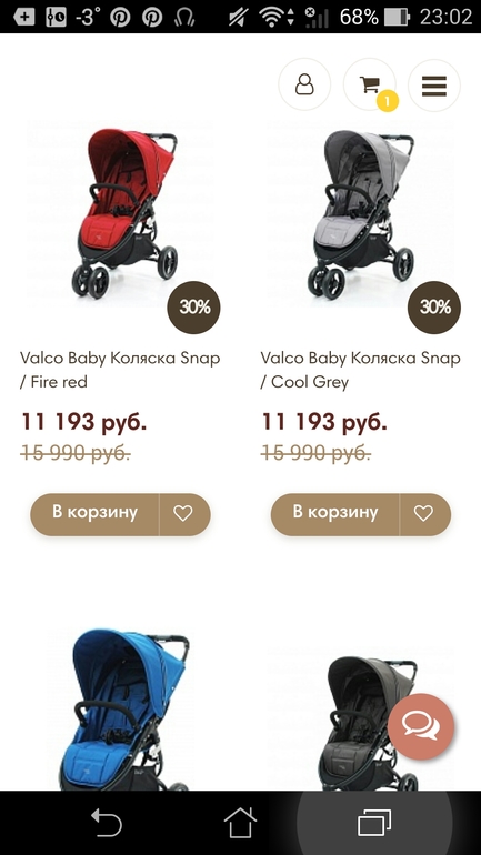 На сайте "Первая коляска" на снапы 40%. Цена от 8990 https://www.first-buggy.ru/catalog/detail/Прогулочные-коляски-Valco-Baby/Valco-Baby-Snap/?color=6753