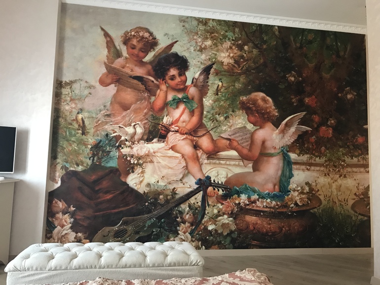 А мне очень нравится, но у нас не фотообои, а фрески, но в принципе одно и то же)
