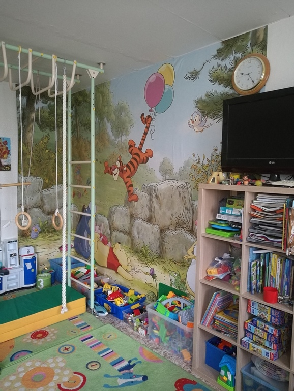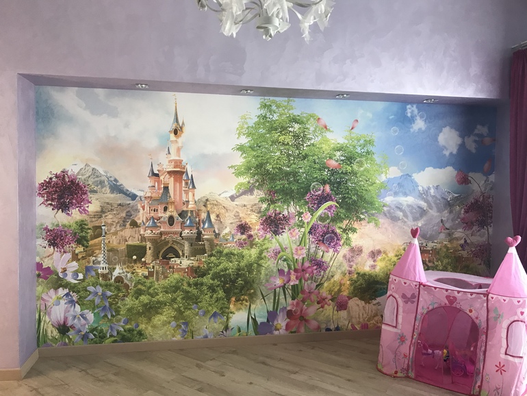 Не лучший вариант для демонстрации фотообоев, конечно, т.к нет базового ремонта, мы в с,емной квартире, где потолки и полы от дешёвого застройщика, обои вокруг фотообоев не в дугу (хотя те, что на двух других стенах, как раз сочетаются), да и наклеено углом, но фотообои мы и клеили как экстренное решение, двойняшки за первые полтора год ободрали угол как липку