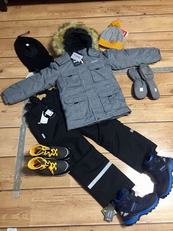 Аксы: перчатки софтшелл Лесси ( не знаю что за зверь, , не брала ни разу), краги Дидрик, шлемы Рейма хлопок и тонкая шерсть. Полосатый наверно нужно будет заменить на однотонный, посмотри ближе к сезону.
