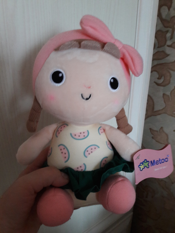 Ещё дали всю тряпичную - её на годик старшей дарили - восторга много было, но играть с ней не так удобно - она больше, ну и как-то меньше зашла. Старшая тоже с пупсом потом больше и дольше играла, чем с тряпичной.