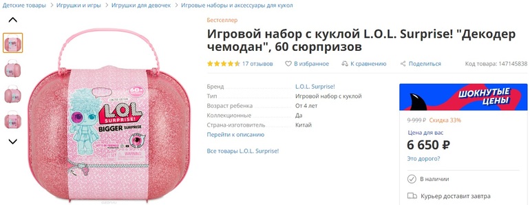 Я правда рассуждаю с учетом того, что я бы по рыночной стоимости России ни одну лол не купила. Моя внутренняя жаба говорит, что это неадекватная стоимость игрушки. Так что все что в заначка куплено со скидками или вот последнюю из-за границы привезла Подруга.