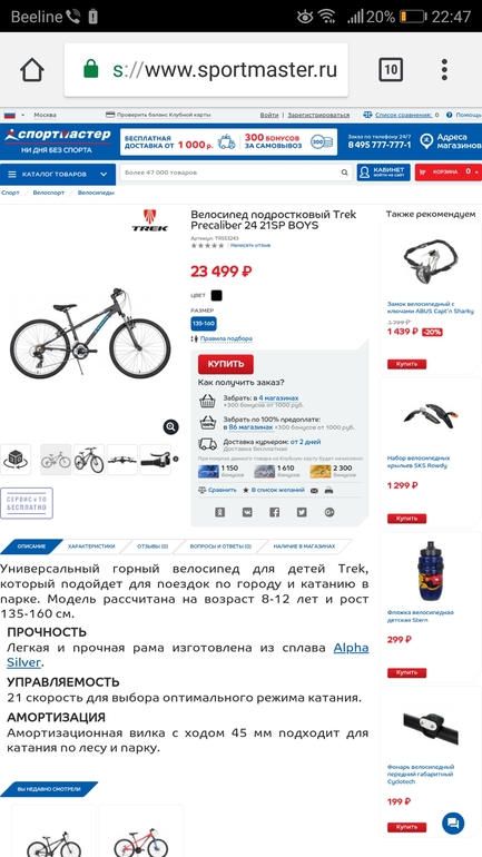 Спортивные товары. Велосипеды, самокаты, машины. СанкиДумаю,а не купить ли мне на рост 135 быстрорастущему мальчику с весом 25 кг, вот такой велик. Что скажете? Как соотношение цена-качество ?