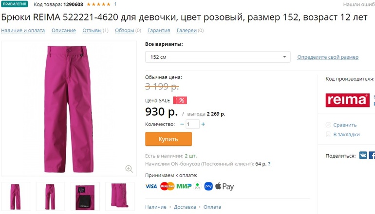 Простите, я не понимаю, там цена на штаны не 930 р, а 3199. Как получить цену в 930 р?