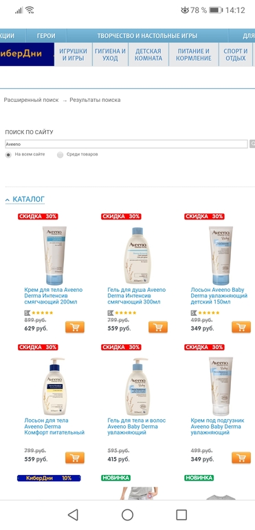 Aveeno мне сайт дм почему-то вообще не показывает, кстати... А то б нам эмульсию, скоро закончится. Как Марик, пробы сделали?