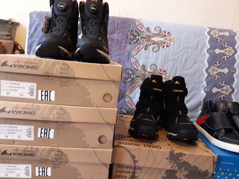 Купила на следующую зиму и даже через одну. Заказала еще и носки с шапками, но сегодня заказ отменили - товара нет в наличии. Жаль. Большая часть обуви куплена в интернет магазине. Но сегодня поехала в мегу теплый стан - и застряла в магазине - кстати - я попала, когда им подвозили еще товар - появились еще размеры, купила кроссовки викинги 37 и 38 размеры, по 1600 вышли.