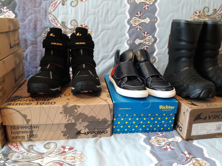 Сапоги резиновые взяла с ушками детские,легче,чем Вики;Рихтер замшевые на 2х липучках очень понравились 36р,кроссовки как у вас красно-бордовые 36р и себе ботинки Вики взяла 37р