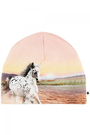 Добрый день! У Моло размеры по возрасту. У нас шапка 3-5 лет. В 2 года в самый раз по размеру. Объем головы у дочери не скажу)