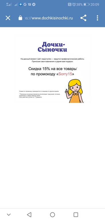 мне на вайбер вообще ничего не пришло, о распродаже узнала только сегодня, три часа назад. Успела урвать куртку Хуппа, потом проснулась Москва и сайт завис :))) промик не сработал, я этому даже не удивилась :))