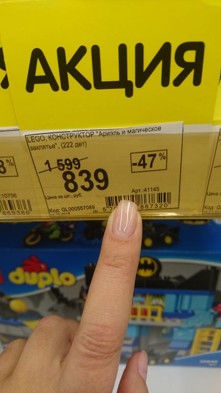 Мария, отчитываюсь) . У нас почти пустые полки, скидочные наборы стоят отдельно от основной массы лего, ценники со скидками.