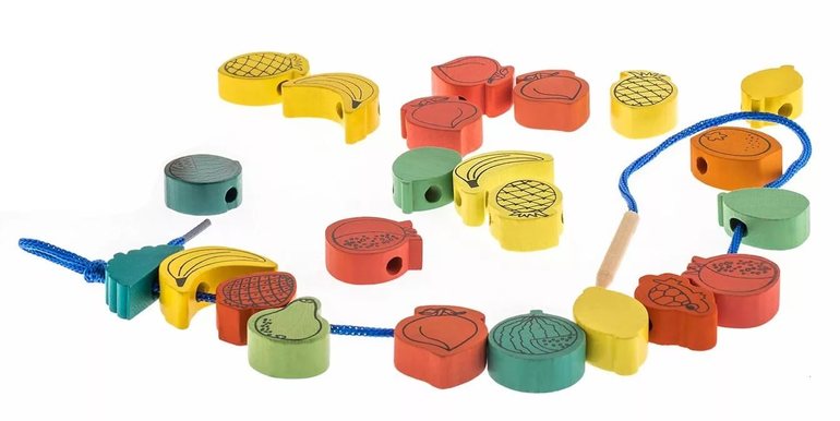 Покупала такие. Честно говоря не заморачивалась никакими фирмами. Просто пришла в ближайший детский магазин и купила небольшую баночку на пробу. Понравилось, что там два шнурка и бусины дублируются. Можно сделать одни большие бусы, можно маме одну веревочку ребёнку другую и учить повторению, чтобы ребёнок брал такой же предмет как и мама. А всего 6 деталей очень быстро надоест. И мне кажется ну очень дорого.