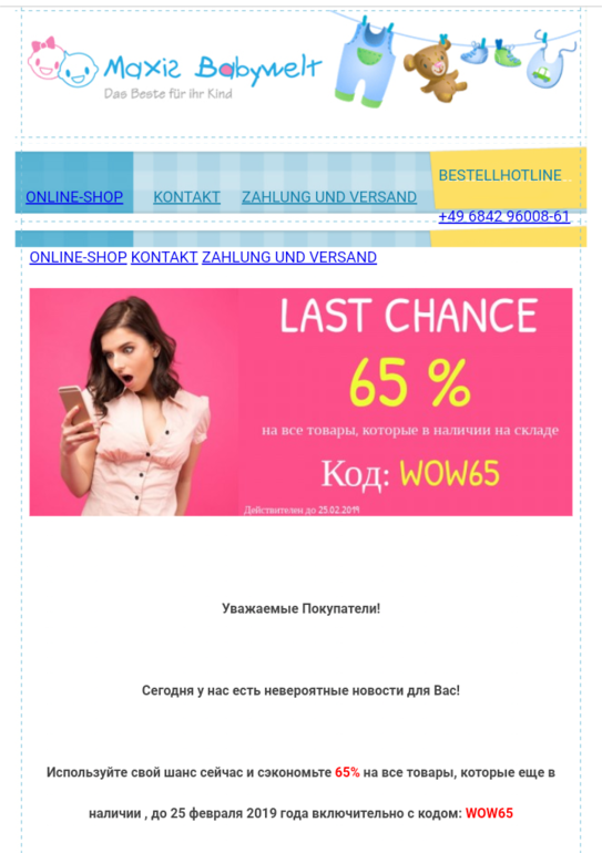 Используйте свой шанс сейчас и сэкономьте 65% на все товары, которые еще в наличии , до 25 февраля 2019 года включительно с кодом: WOW65