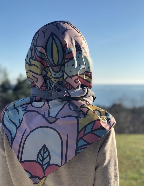 На нижней картинке еще видна ткань подкладки - она нескользкая, поэтому платок не слетает.