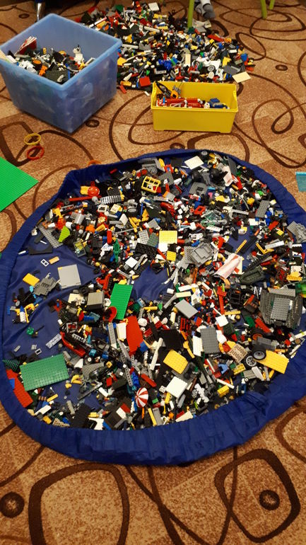Сейчас у нас в основном Лего дупло валяется, основная часть в одном месте. Как раз на коврик бы поместилось. Чем по детальке собирать в коробку каждый день по несколько раз, удобнее лёгким движением руки быстро всё убрать.